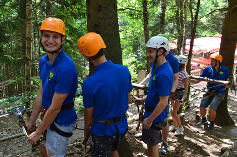 Lehrer und Begleitpersonen bitten wir, die ganze Dauer über die Gruppe zu begleiten, denn das schafft bei den Kindern Sicherheit und stärkt im weiteren auch die Gemeinschaft :) Das kann gerne beim Klettern auf den Parcours passieren oder vom Boden aus.